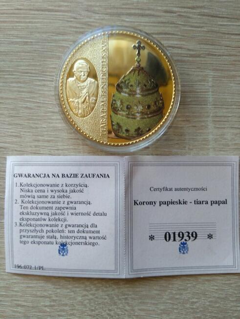 Medal okolicznościowy z serii Korony Papieskie Tiara Papal, Tiara Benedykta XVI. Medal wykonany w całości z miedzi i ...