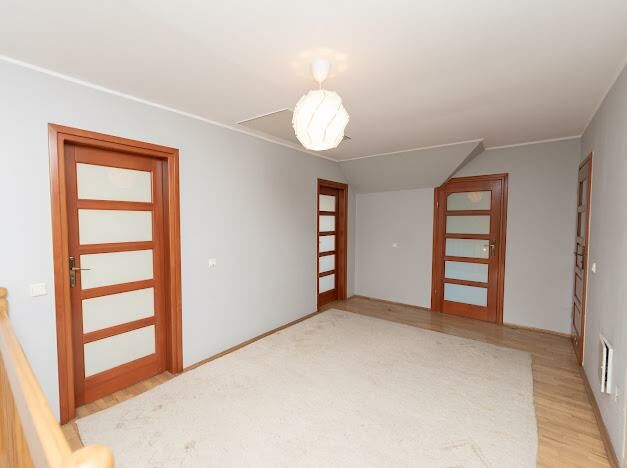 Nieruchomość składa się na parterze: salon (z kominkiem) 35 mkw, jadalnia 32 mkw. kuchnia 13 mkw, gabinet 17,5 mkw, łazienka 3 mkw, wiatrołap 4,5 mkw, kotłownia/pomieszczenie gospodarcze 6,5 mkw, przedpokój 5,5 mkw, garaż 19 mkw. Na piętrze: 4 pokoje, w tym jeden z garderobą: 27,5 mkw, 21 mkw, 18, mkw, 10 mkw, łazienka 15 mkw. Wszystkie pokoje z balkonami (barierki do zrobienia).